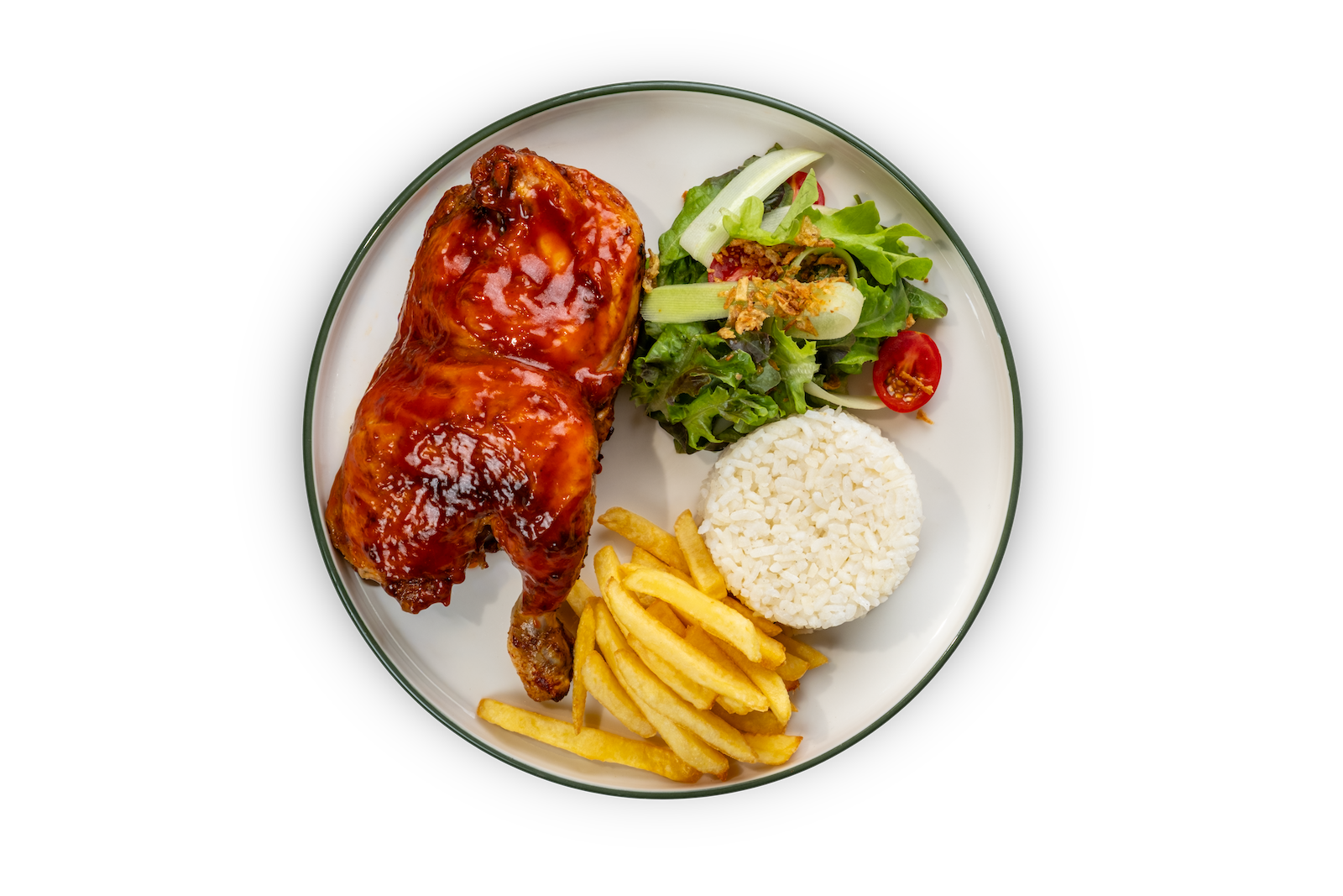 Yarım Tavuk, Pilav, Kızarmış Patates, Salata
